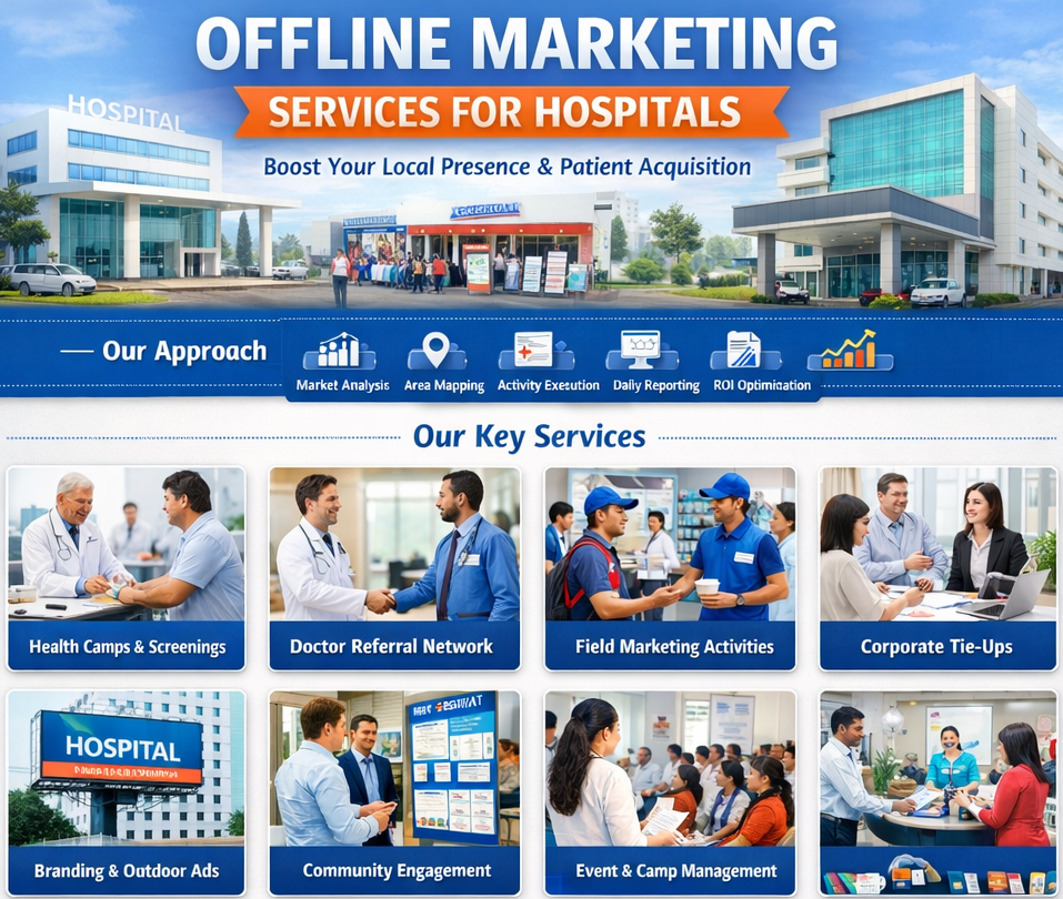 Our Offline Marketing Services are designed specifically for hospitals, clinics, and IVF centers to enhance local presence, brand credibility, and patient acquisition through strategic on-ground activities.